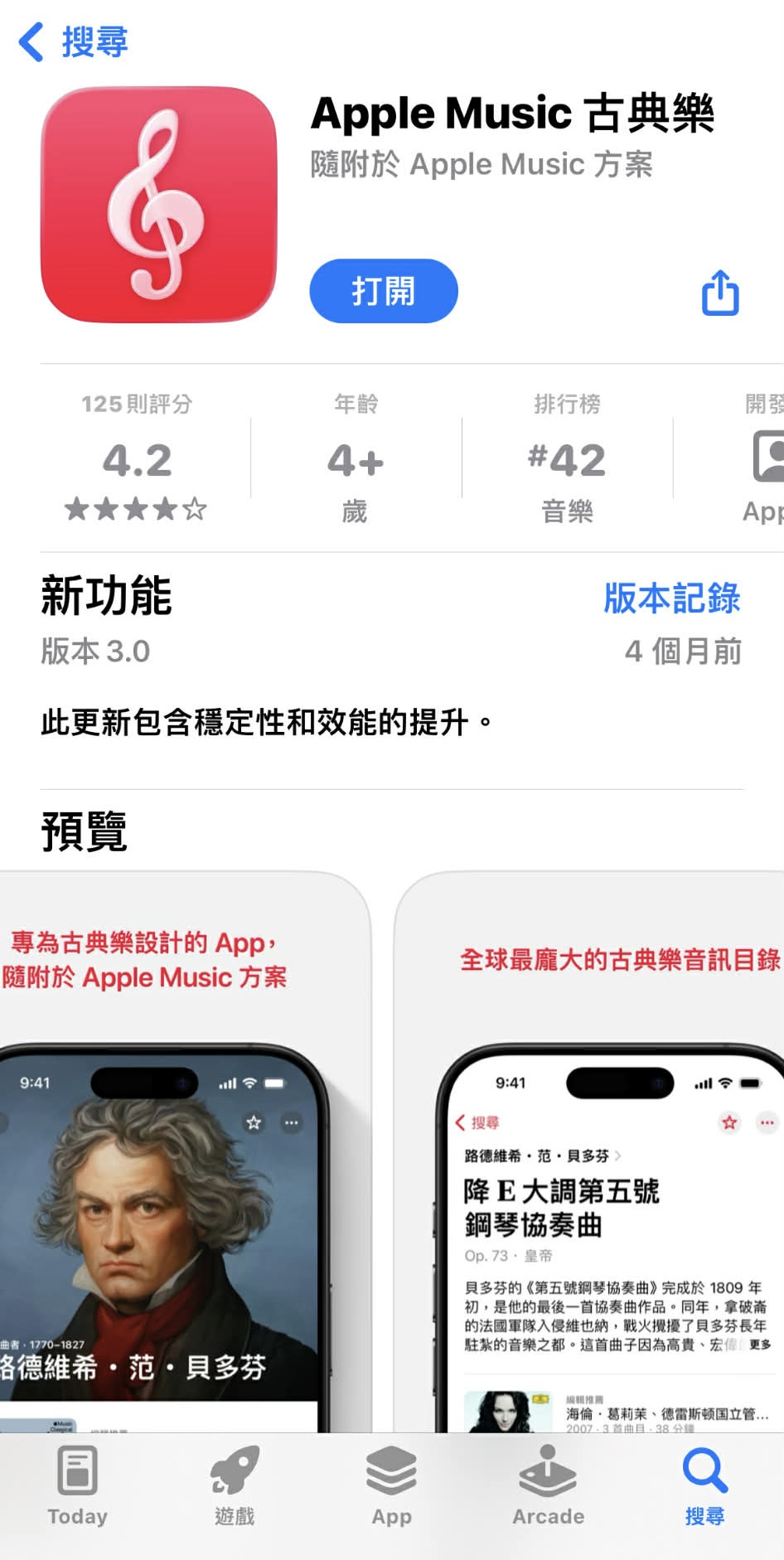 若您為APPLE手機可下載「Apple Music古典樂」即可隨時聆聽古典樂曲,此APP裡收錄非常多不同時期、不同樂派由名家演奏的經典單曲與專輯。